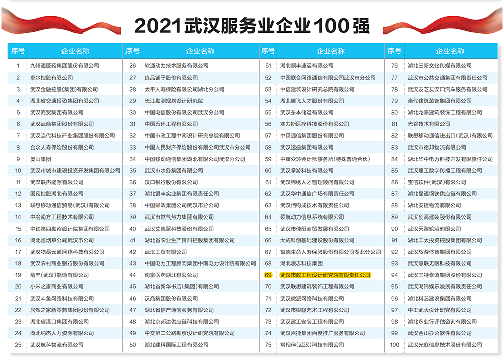 榮登“2021武漢服務(wù)業(yè)企業(yè)100強”