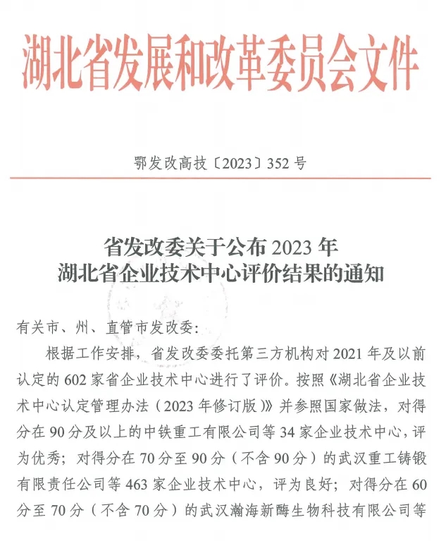 完成湖北省發(fā)改委組織的省企業(yè)技術中心三年評價并獲評“良好”