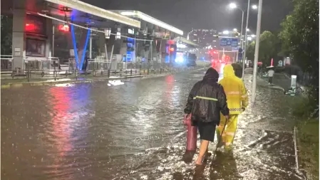 時間回到2019年6月21日,武漢經(jīng)歷了當年24小時最大累計降雨量174.7毫米的暴雨,高新大道與光谷七路路口出現(xiàn)了嚴重漬水,路面最大漬水深度達到50cm,且有部分雨水通過有軌電車與地鐵換乘通道進入地鐵站點,嚴重影響周邊交通出行。