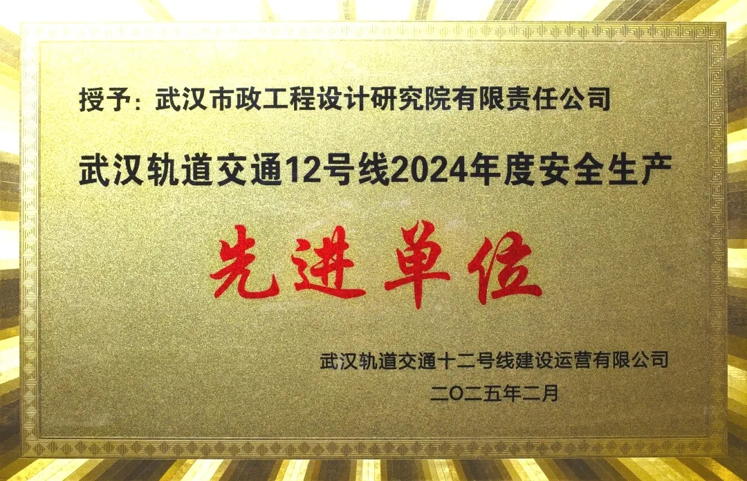 ? ? 初春擂鼓揚(yáng)帆,前方捷報(bào)頻傳。近日,武漢市政院憑借在武漢軌道交通12號(hào)線安全生產(chǎn)領(lǐng)域的突出表現(xiàn),被武漢軌道交通十二號(hào)線建設(shè)運(yùn)營(yíng)有限公司授予“武漢軌道交通12號(hào)線2024年度安全生產(chǎn)先進(jìn)單位”稱號(hào)。