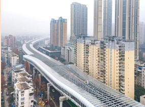 ? ? 項(xiàng)目設(shè)計(jì)團(tuán)隊(duì)始終秉持 “輕量化、智能化、綠色化” 理念,多項(xiàng)技術(shù)應(yīng)用填補(bǔ)區(qū)域空白,樹立行業(yè)新標(biāo)桿。在鋪裝材料與工藝上,主線高架鋼箱梁橋面采用澆注式瀝青鋪裝,相比傳統(tǒng)方案減重16%,既降低橋梁結(jié)構(gòu)負(fù)荷、提升安全性,又縮短施工周期;鋼箱梁采用U肋全熔透智能焊接,大幅提高結(jié)構(gòu)疲勞壽命,積極推進(jìn)鋼箱梁U肋焊接工藝的發(fā)展。尤為引人注目的是,本項(xiàng)目集中展現(xiàn)了三大創(chuàng)新亮點(diǎn):它擁有全國(guó)最長(zhǎng)的連續(xù)全封閉聲屏障,是湖北省首例“光伏+市政”的融合實(shí)踐,更在武漢率先實(shí)現(xiàn)了聲屏障光伏發(fā)電的應(yīng)用,為綠色市政建設(shè)樹立了新的樣板。