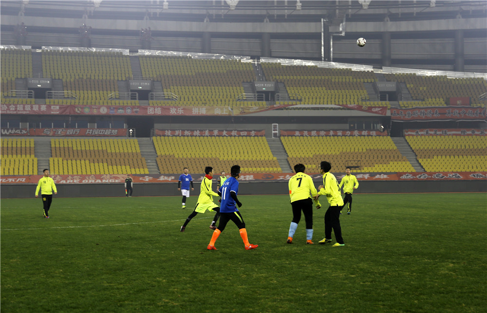 五環(huán)體育中心是武漢市為舉辦第七屆世界軍人運(yùn)動(dòng)會(huì)新建的規(guī)模最大的比賽場館,曾承擔(dān)了軍運(yùn)會(huì)足球、乒乓球、水上救生等項(xiàng)目的比賽。盡管軍運(yùn)會(huì)已經(jīng)過去近三個(gè)月了,但如今置身其中,仍然能感受到軍運(yùn)賽事帶來的澎湃與激情。或許這種情緒也感染著場上的隊(duì)員們,他們從一開始就迅速進(jìn)入了比賽狀態(tài),身穿藍(lán)色球衣的東西湖區(qū)聯(lián)隊(duì)在開場不久便率先破門攻入一球,但公司的隊(duì)員們?nèi)匀环€(wěn)扎穩(wěn)打,很快就將比分扳平。重回同一起跑線的兩隊(duì)在隨后的比賽中更是你來我往,展開了高質(zhì)量的攻防大戰(zhàn),比分交替領(lǐng)先,最終雙方又各進(jìn)四球,在一場精彩的進(jìn)球大戰(zhàn)后以5:5的比分握手言和。