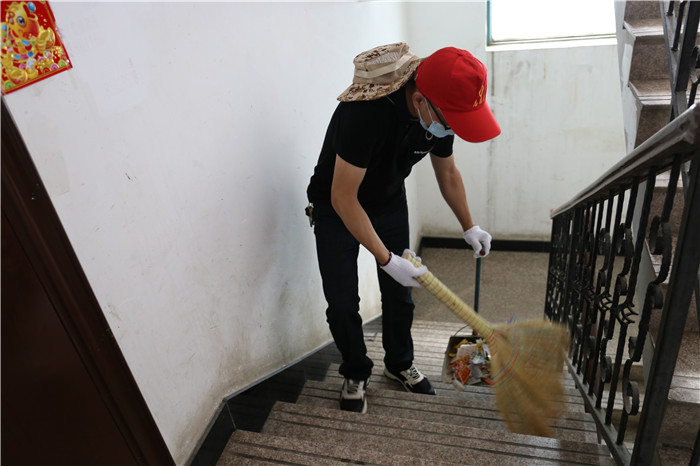 由于該小區(qū)系老舊小區(qū),樓棟內(nèi)沒有電梯,黨員們需要步行逐層進(jìn)行清理,加之暑熱未消,沒過一會他們的衣服就被汗水浸濕了,額頭上也掛滿了密密的汗珠。但看著煥然一新的房門和墻面,他們的心里也油然生出了滿滿的成就感。
