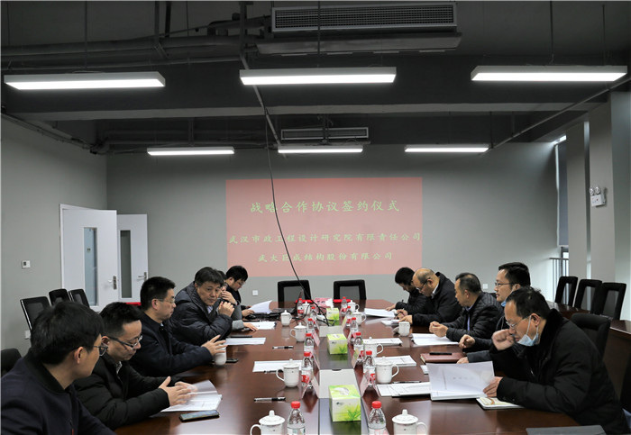 2021年3月3日下午,武漢市政設(shè)計院與武大巨成結(jié)構(gòu)股份有限公司在漢簽署戰(zhàn)略合作框架協(xié)議,雙方將充分發(fā)揮各自優(yōu)勢,創(chuàng)新合作模式,拓寬合作渠道,在結(jié)構(gòu)加固技術(shù)領(lǐng)域,針對新設(shè)備、新材料、新工藝的應(yīng)用開展交流合作。武漢市政設(shè)計院總經(jīng)理姚華、副總經(jīng)理陳建斌、總經(jīng)理助理呂錦剛與武大巨成公司董事長高作平、總經(jīng)理萬雄衛(wèi)、副總經(jīng)理廖杰洪、副總經(jīng)理張暢及相關(guān)人員出席了簽約儀式。