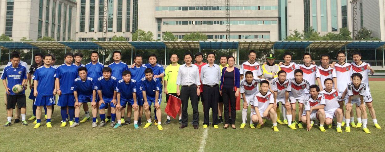 ??? 5月7日下午,位于北湖的漢口體育中心內(nèi)人聲鼎沸,活力四射,公司“慶五四”足球友誼賽在這里舉行。公司黨委書記蔡輝、副總經(jīng)理張偉及各分工會(huì)主席、部門負(fù)責(zé)人到現(xiàn)場(chǎng)觀看了比賽。