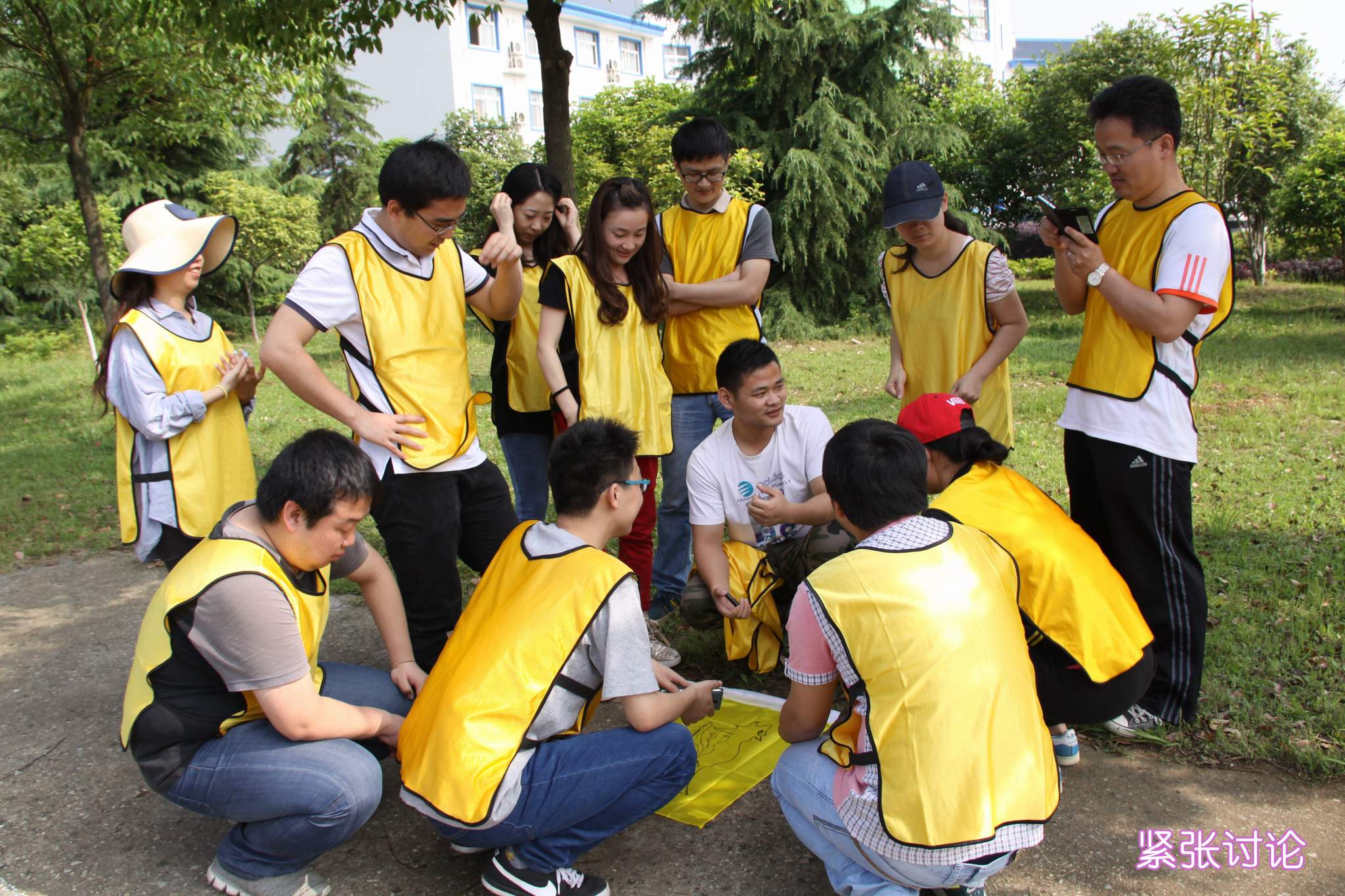 ??? 在下午的拓展訓(xùn)練中,每支隊(duì)伍要根據(jù)線(xiàn)索提示分別前往五個(gè)不同的地方完成任務(wù),而只有完成一個(gè)任務(wù)后,才能獲得下一個(gè)任務(wù)的線(xiàn)索。由于每個(gè)任務(wù)的地點(diǎn)相距較遠(yuǎn),因此這是對(duì)體力和腦力的雙重考驗(yàn)。隊(duì)員們充分發(fā)揚(yáng)團(tuán)隊(duì)精神,他們向周邊的游人說(shuō)出接頭暗號(hào),從幾十名游客中將接頭人尋找出來(lái);他們互幫互助,保證了每名隊(duì)員都能參與并完成踢毽子游戲;他們集思廣益,用一張小小的A4紙張和一把剪刀,便能在不需要任何粘合工具的情況下制作出能夠容納所有隊(duì)員的圓環(huán);他們齊心協(xié)力,帶領(lǐng)體力不好的隊(duì)員堅(jiān)持完成了爬山越野。