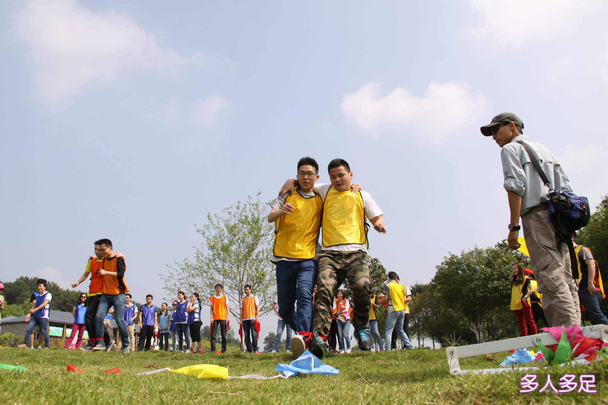 ??? 在上午進(jìn)行的場(chǎng)地項(xiàng)目中,青年員工在經(jīng)過(guò)簡(jiǎn)短的熱身后被分成了三支隊(duì)伍,在確定各自的隊(duì)伍名稱(chēng)、隊(duì)旗、口號(hào)、隊(duì)歌后,活動(dòng)項(xiàng)目正式開(kāi)始。在第一項(xiàng)“多人多足”的項(xiàng)目中,每支隊(duì)伍的隊(duì)員們通力合作,默契配合,均以較好的成績(jī)完成了活動(dòng)內(nèi)容。