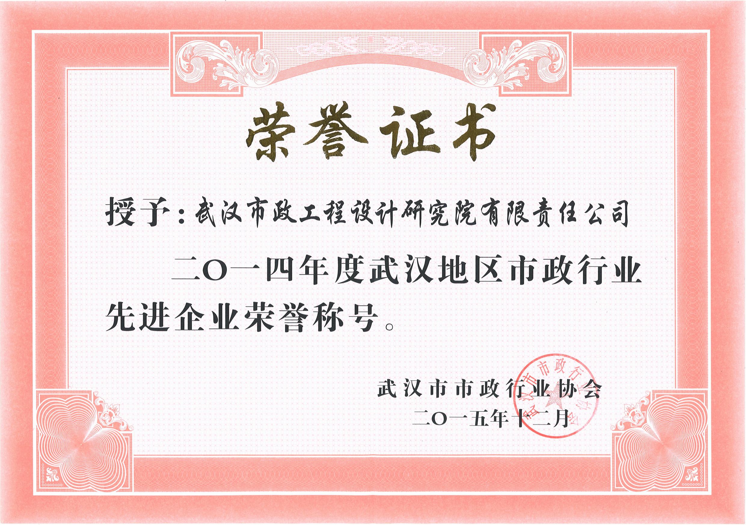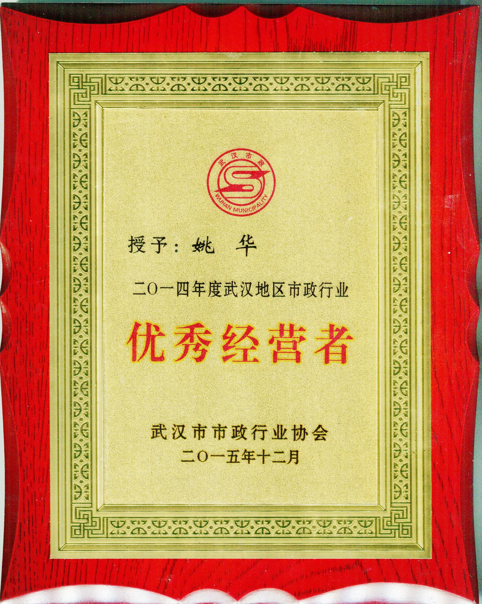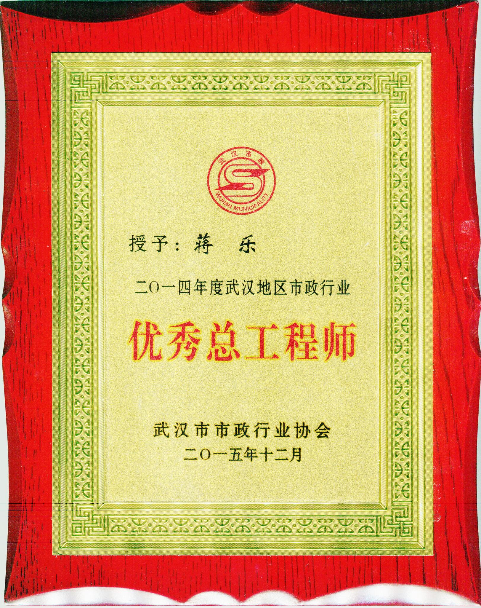 ??? 在2014年度的武漢市市政行業(yè)協(xié)會榮譽(yù)評選中,公司榮獲了“武漢地區(qū)市政行業(yè)先進(jìn)企業(yè)”、“AAA信譽(yù)企業(yè)”等榮譽(yù)稱號;總經(jīng)理姚華同志榮獲“優(yōu)秀經(jīng)營者”稱號;副總經(jīng)理、總工程師蔣樂榮獲“優(yōu)秀總工程師”稱號;萬飛、盛建偉榮獲“優(yōu)秀監(jiān)理工程師”稱號。