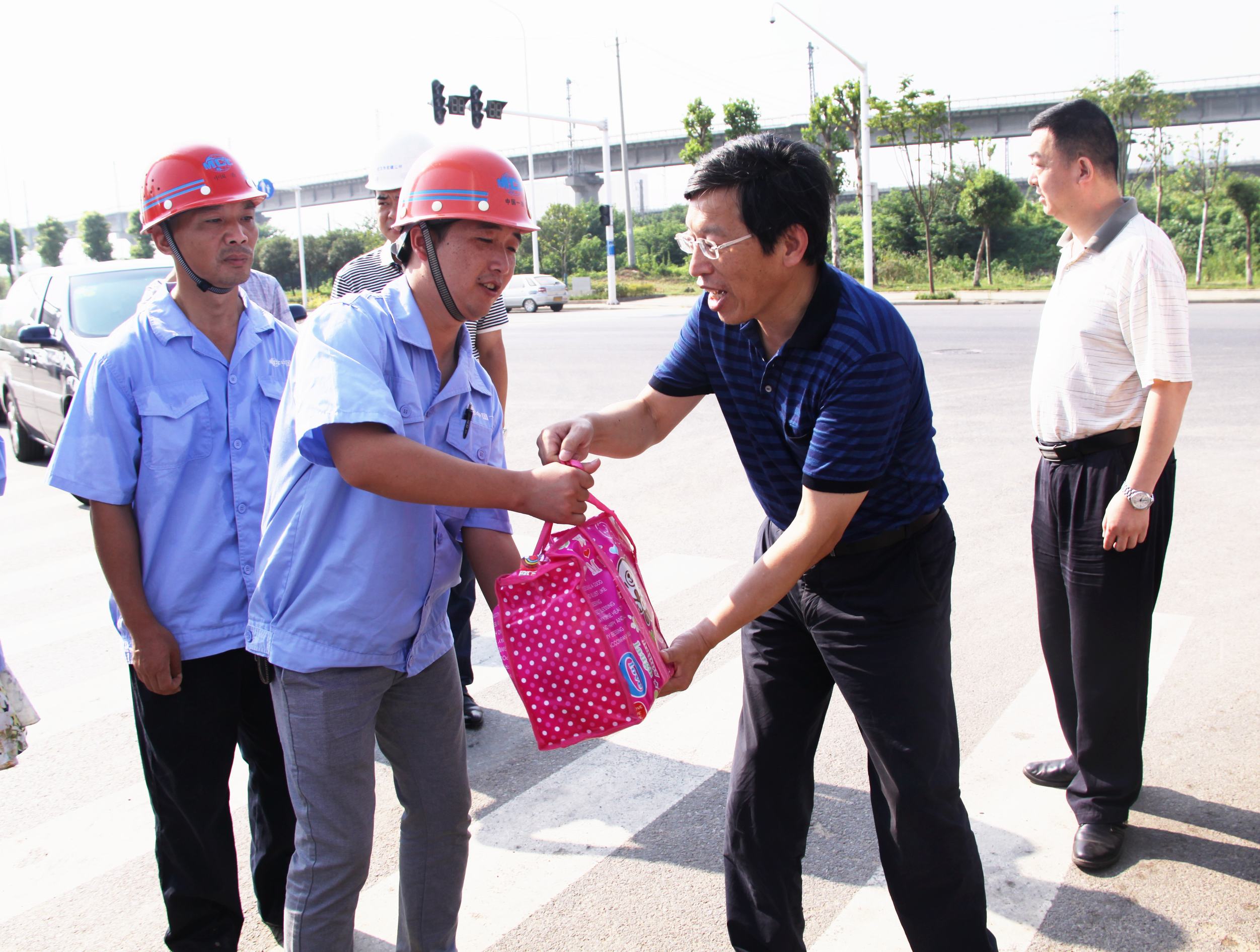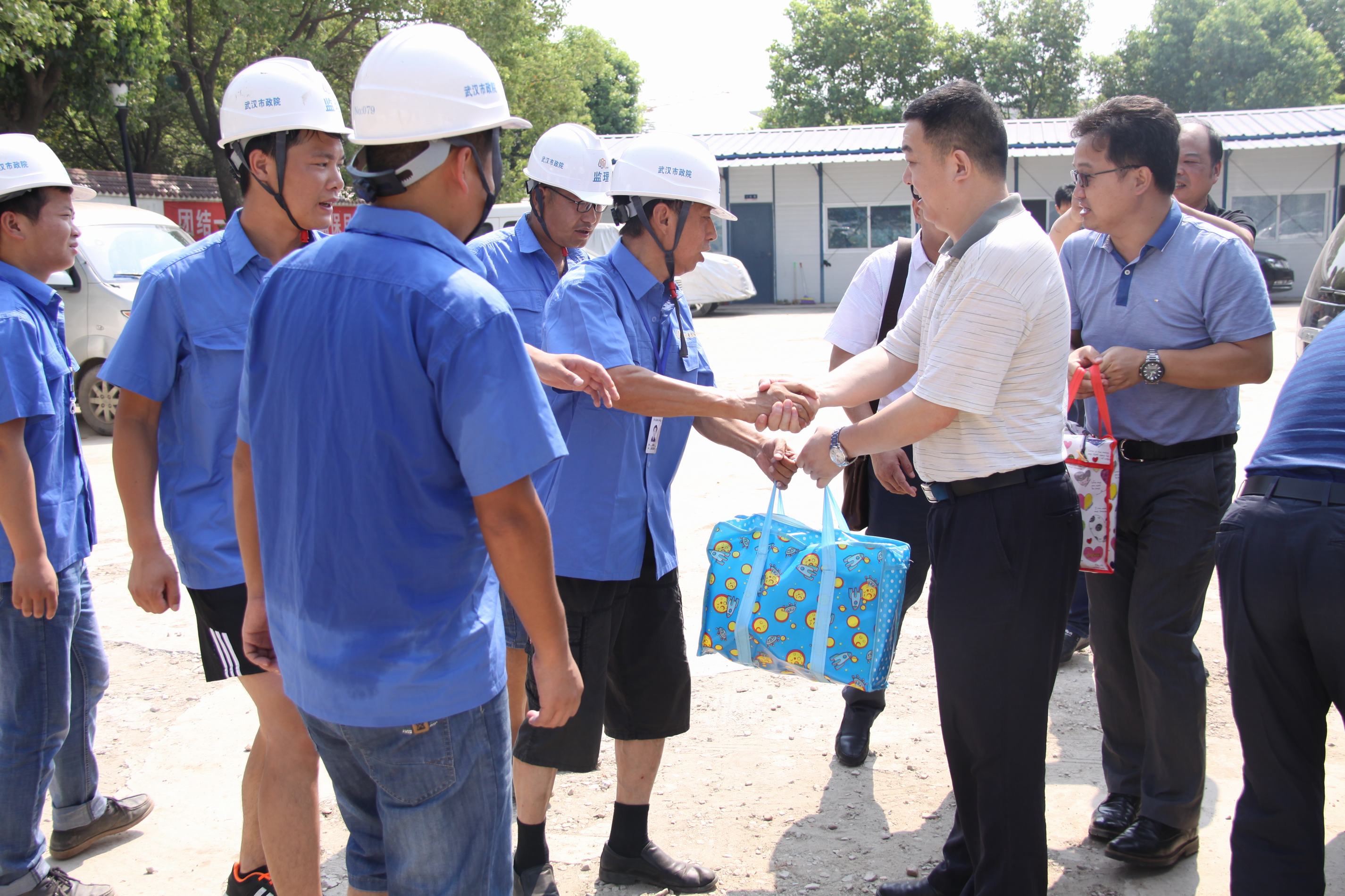 ??? 蔡輝書記一行先后來到城華路、漢陽海綿城市示范區(qū)、黃家湖污水處理廠等工地現(xiàn)場,為堅守在現(xiàn)場的員工們送上消暑慰問品。公司領導聽取了現(xiàn)場負責人的工作情況匯報,詳細詢問了員工們的工作和生活情況,并叮囑他們注意高溫天氣下的工作安全。同時要求相關部門負責人合理安排工作時間,做好人員調(diào)配,制定防暑降溫工作預案,保證一線員工的身體健康。