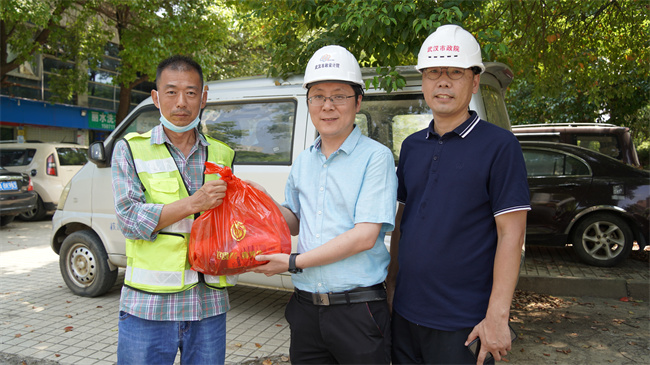 公司領導先后來到長江新城諶家磯再生水廠工程、湯遜湖污水處理廠尾水排江工程總承包項目、環(huán)湖中路排水工程測量、龍王嘴污水處理廠、青山海綿城市等項目現(xiàn)場,詳細了解項目進展情況、高溫防暑措施和疫情防控情況,并為堅守崗位的員工們送上高溫慰問品,感謝他們在城市建設中做出的積極貢獻,叮囑他們做好防暑降溫和個人防護,注意勞逸結合,在保證項目按期推進的同時務必保證個人的安全與健康。